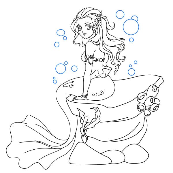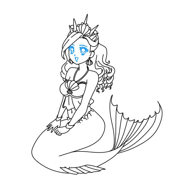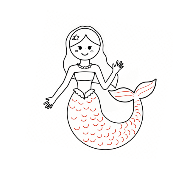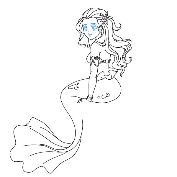 Infine, non dimenticare di disegnare piccole squame di pesce per la sirena.