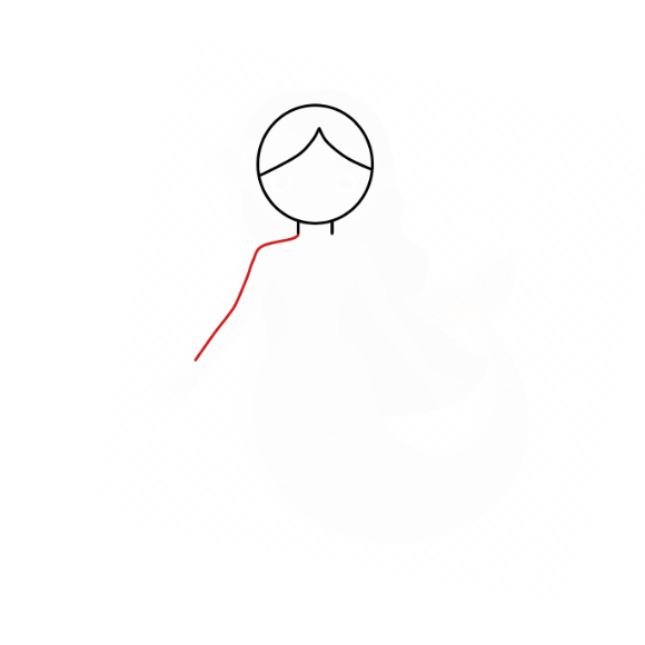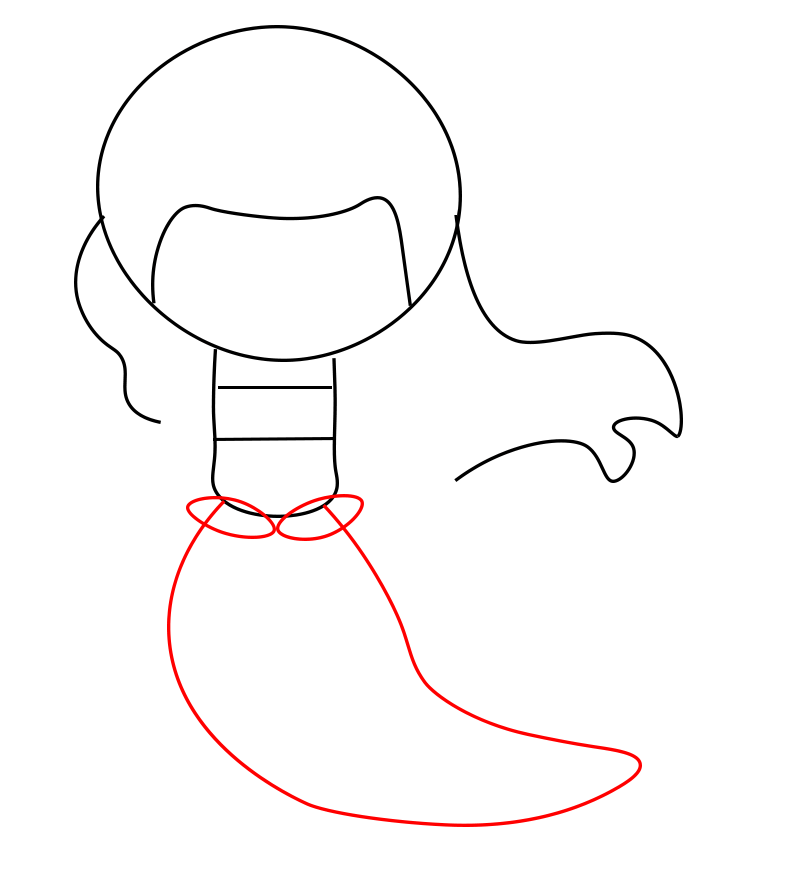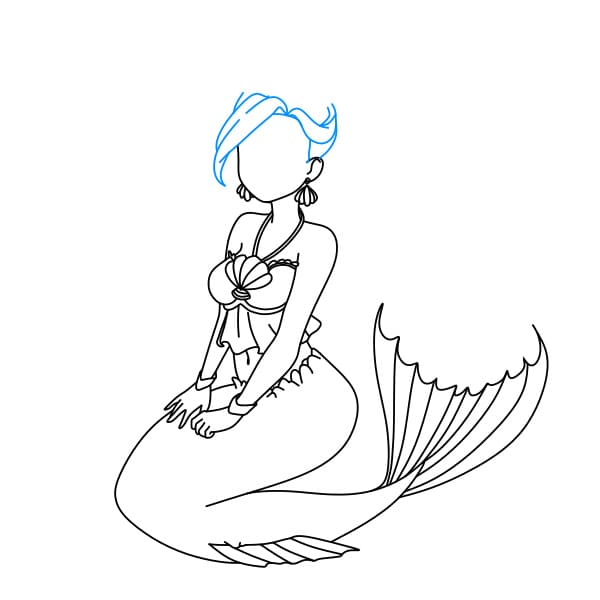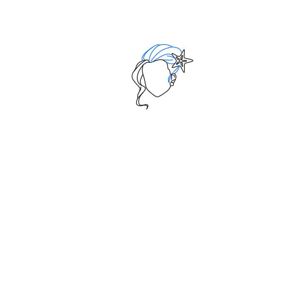 Disegna due piccoli segmenti curvi per fare la frangia per la sirene.