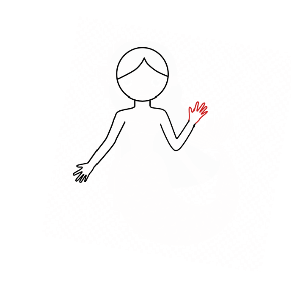 Con l’altro braccio, disegna una sirena che saluta con la mano.