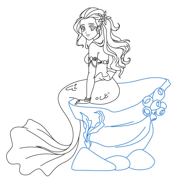 Passo 7: Disegna un’altra roccia su cui è seduta la sirena