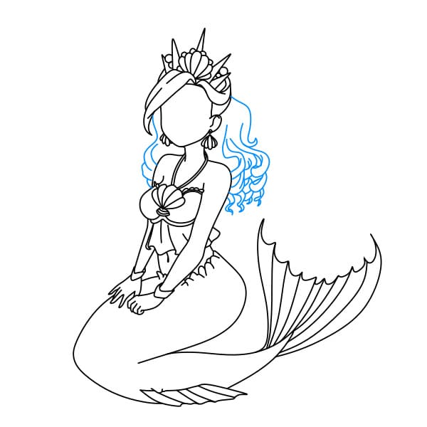 Passaggio 9: Successivamente, disegna i capelli ricci per la sirena