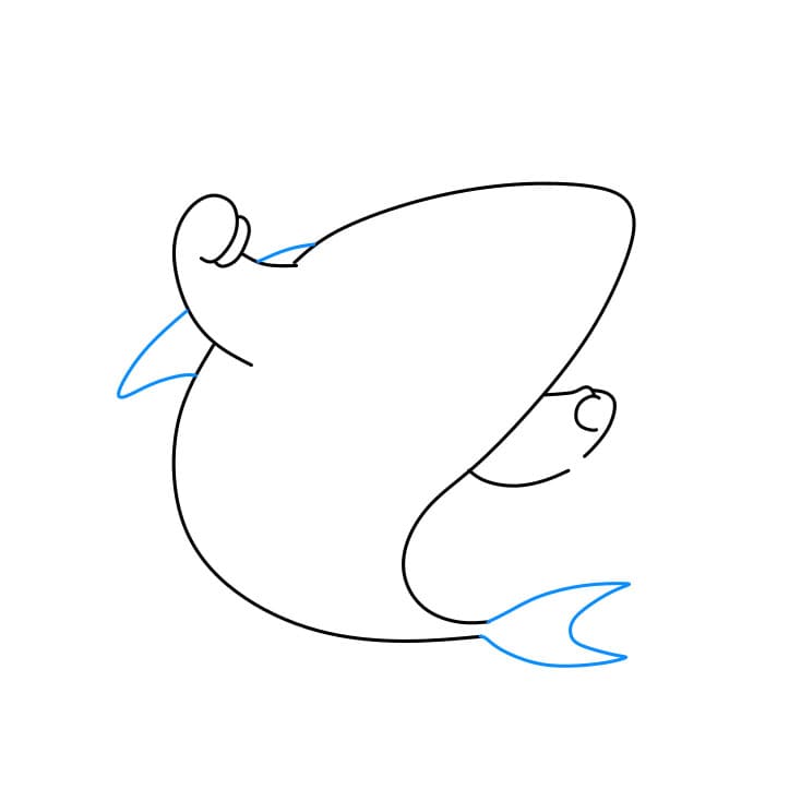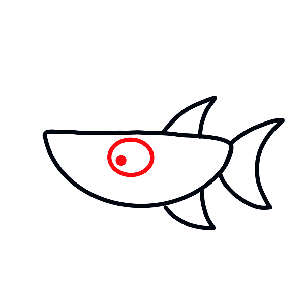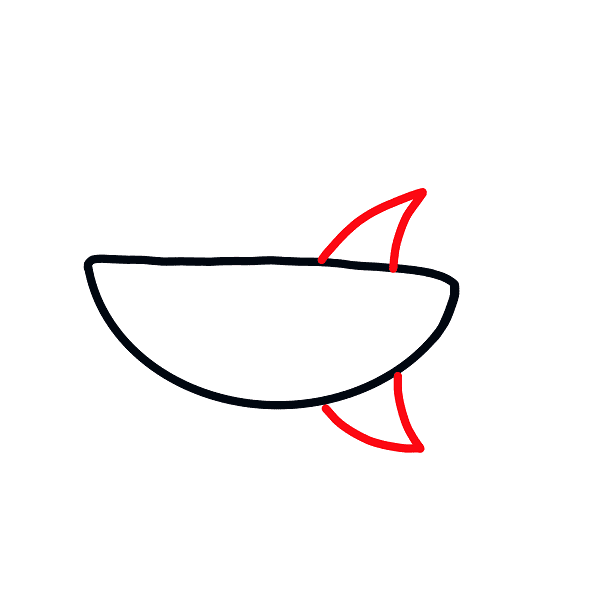Passo 6: Disegna la pinna dorsale e le due pinne intorno al pesce