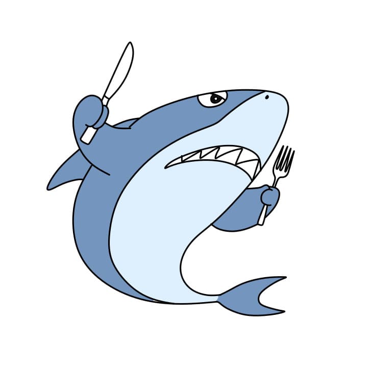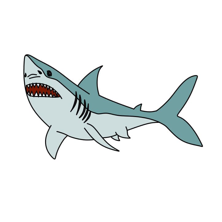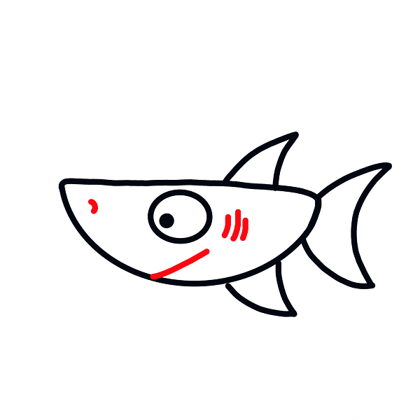 Disegna più branchie e bocca per lo squalo come mostrato di seguito.
