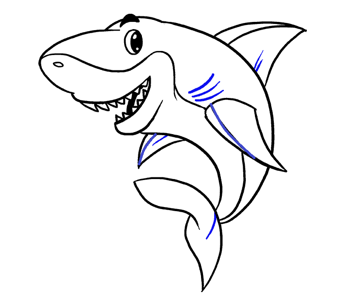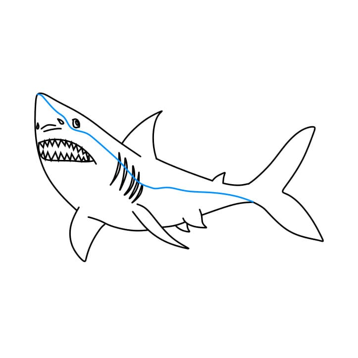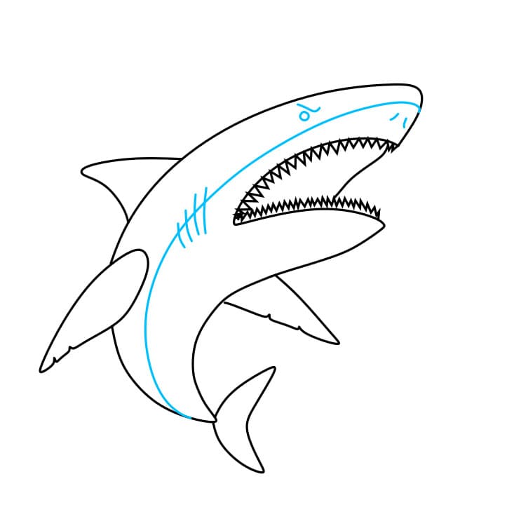 Passaggio 8: disegna maggiori dettagli sul corpo dello squalo