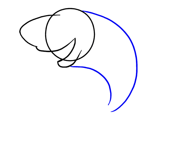 Per prima cosa, disegna un semicerchio per il corpo dello squali.
