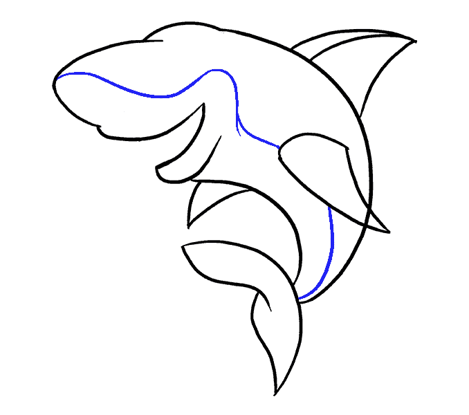 Passaggio 4: disegna la parte inferiore del corpo per lo squalo