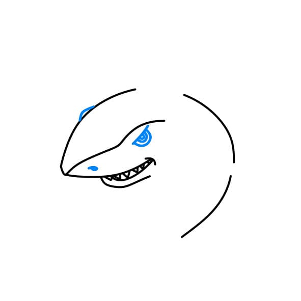 Passaggio 4: disegna più occhi, naso e bocca con denti affilati per gli squali