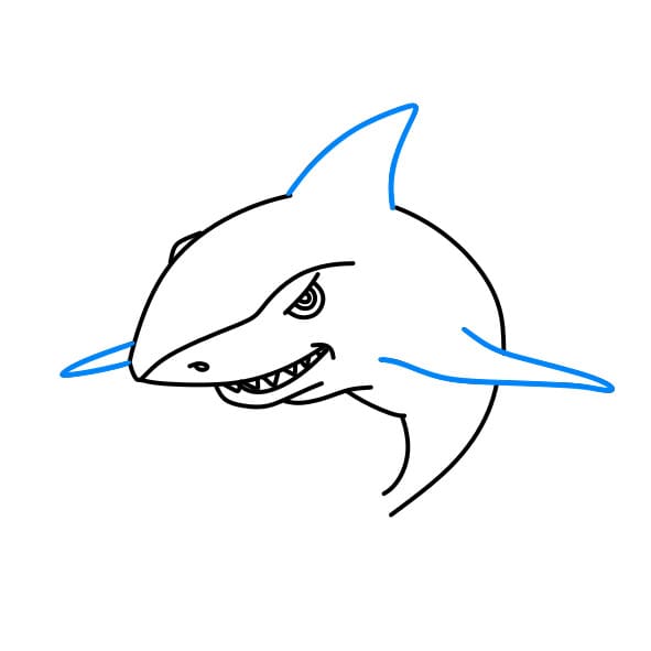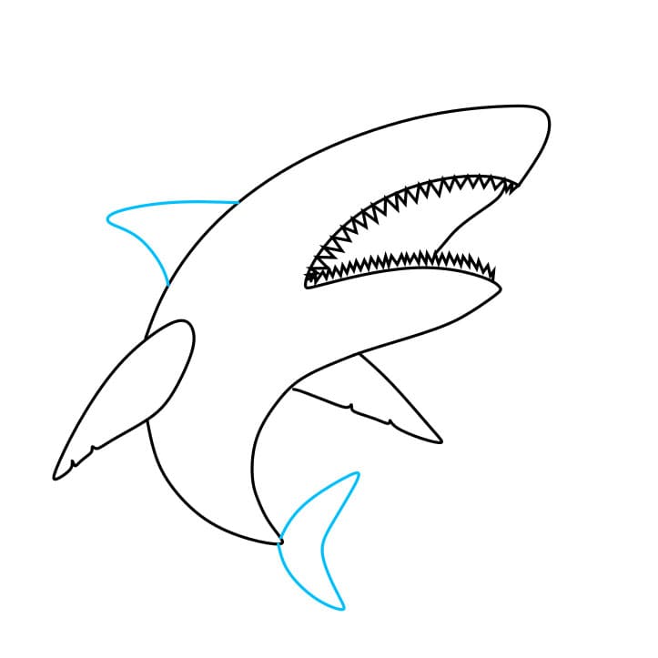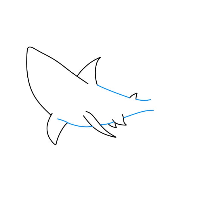 Passaggio 2: disegna più pinne sui lati e sul dorso di questo squalo