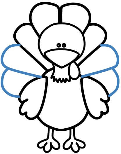 Disegna delle linee curve per le ali del tacchino.