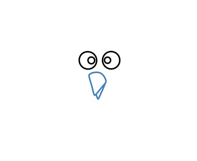 Disegna gli occhi sopra il becco.