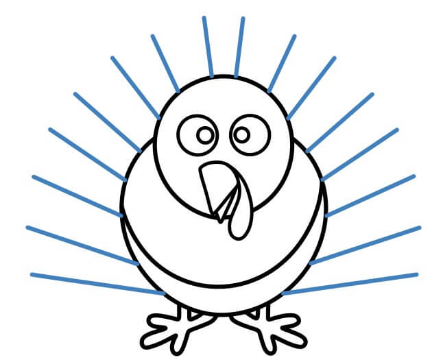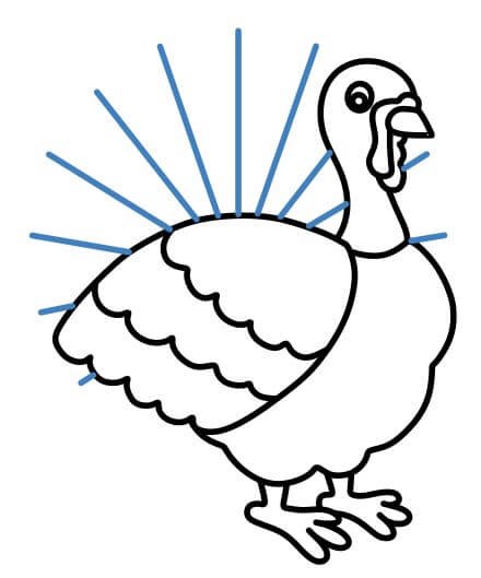 Disegna delle linee dritte dietro il tacchino.