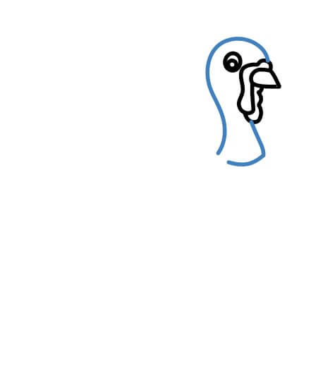 Disegna la testa e il collo del tacchino.