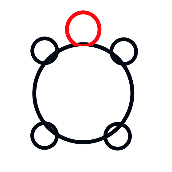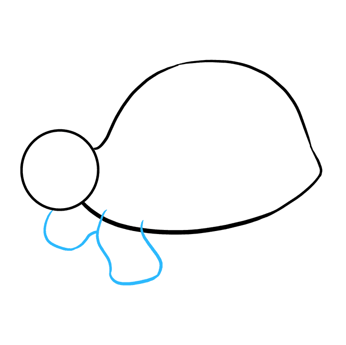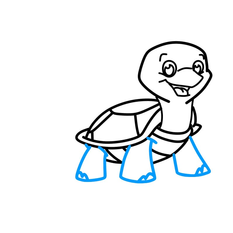 Quindi, disegna quattro piccoli cerchi attorno al corpo come mostrato per creare le gambe della tartaruga.