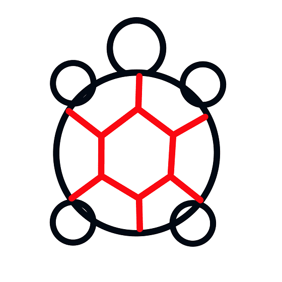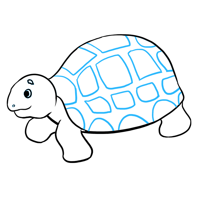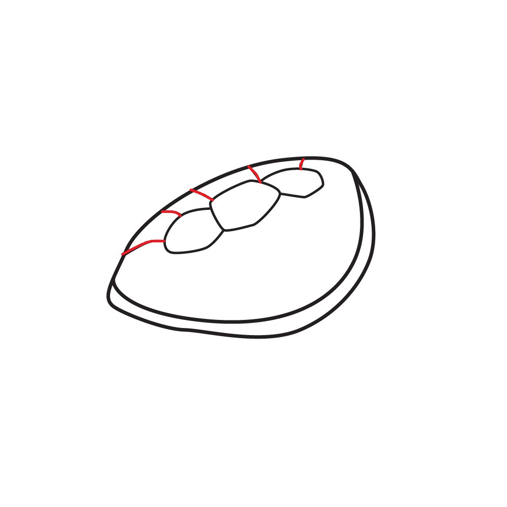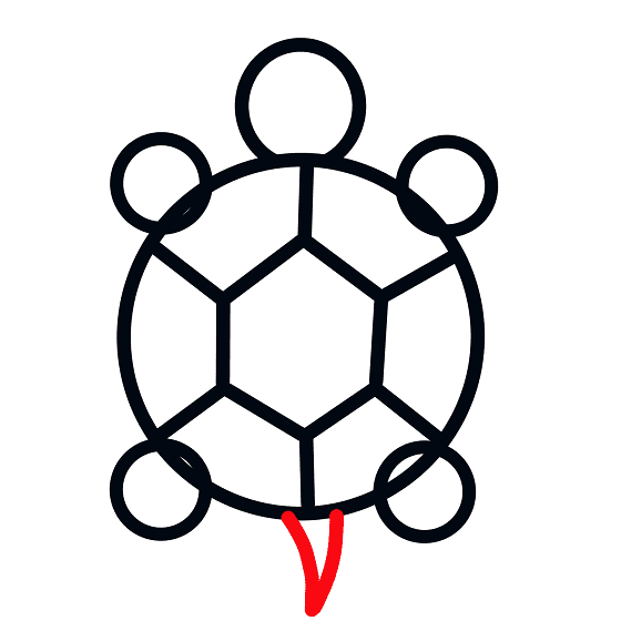 Disegna un esagono al centro del corpo della tartaruga e collega gli angoli dell’esagono con il corpo della tartaruga per creare il guscio della tartaruga.