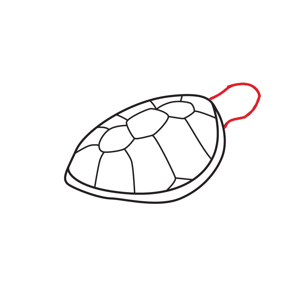 Disegna la forma del guscio della tartaruga, collegandolo al collo e alla testa disegnati.