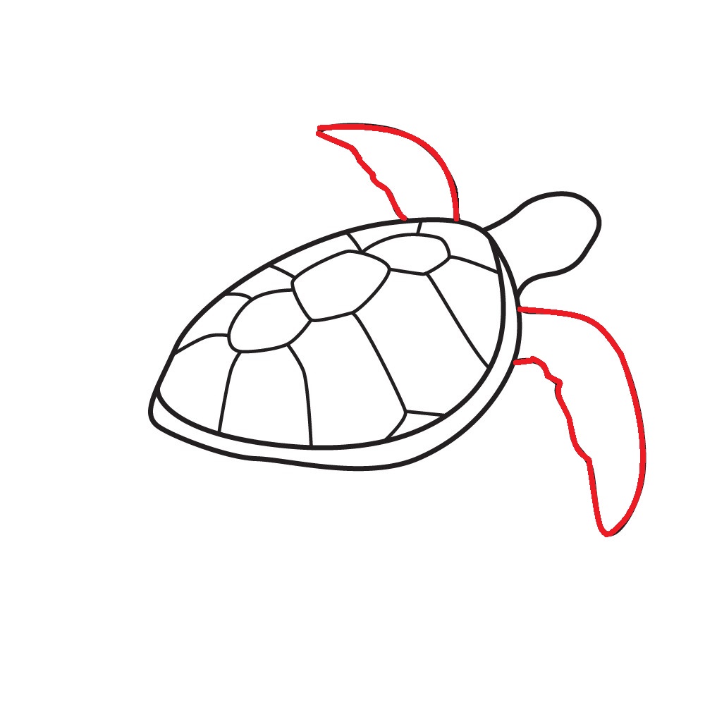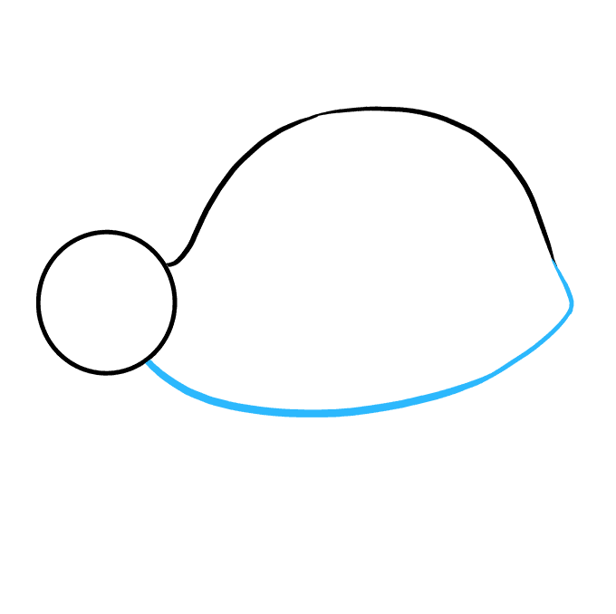 Disegna una linea curva dalla testa al fondo, creando la forma della parte superiore del corpo della tartaruga.