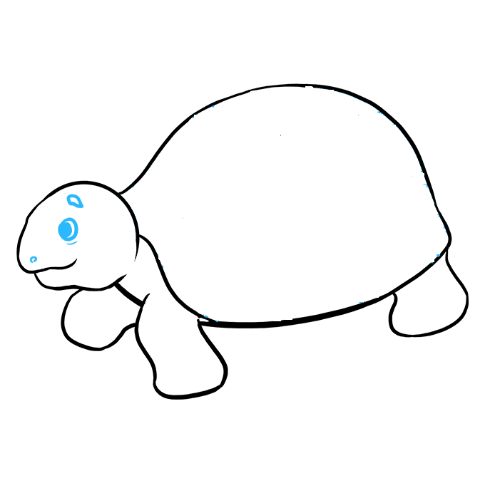 Passo 2: disegna occhi scintillanti sulla testa della tartaruga