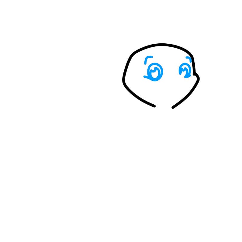 Disegna una piccola linea curva sotto l’occhio per creare una bocca sorridente. Quindi, disegna il contorno arrotondato della testa attorno agli occhi.