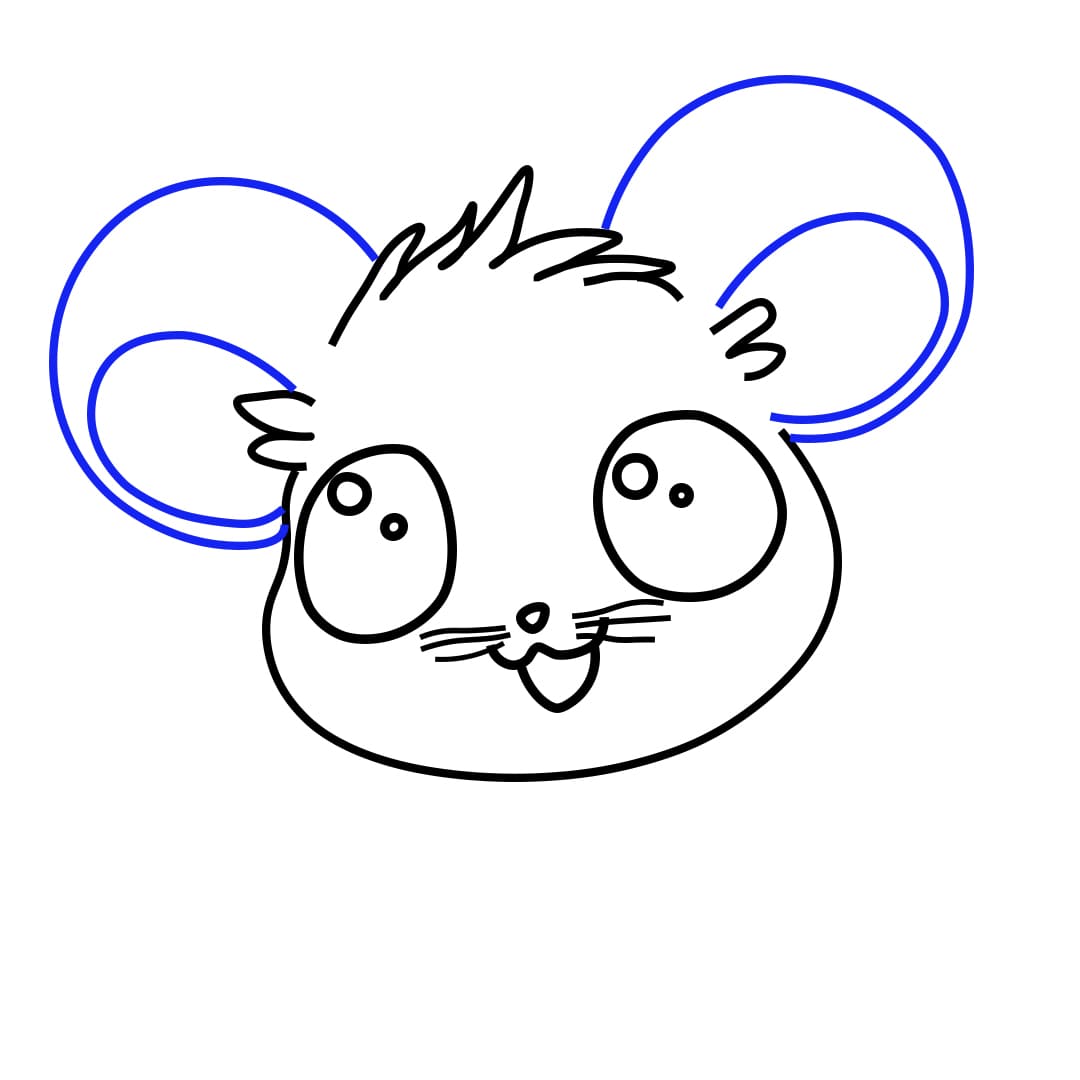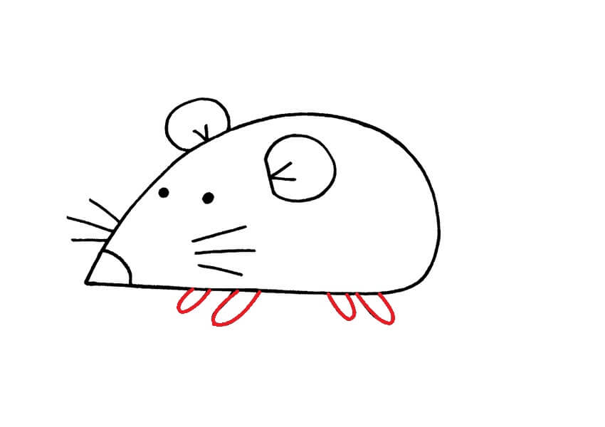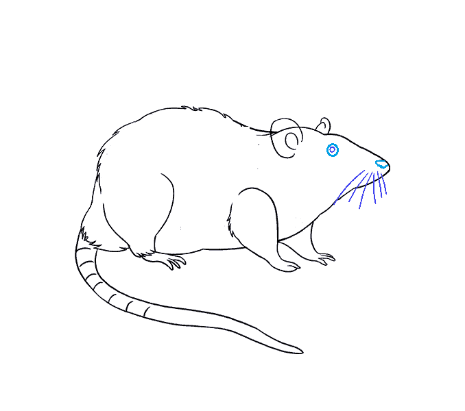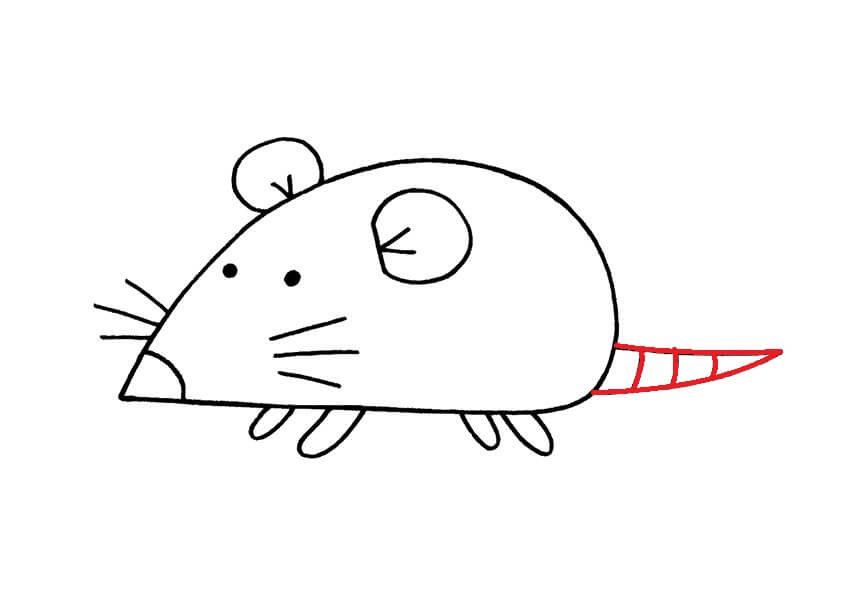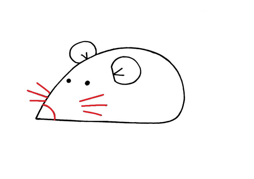 Quindi, disegna gli occhi, il naso, la bocca e la barba per il topo