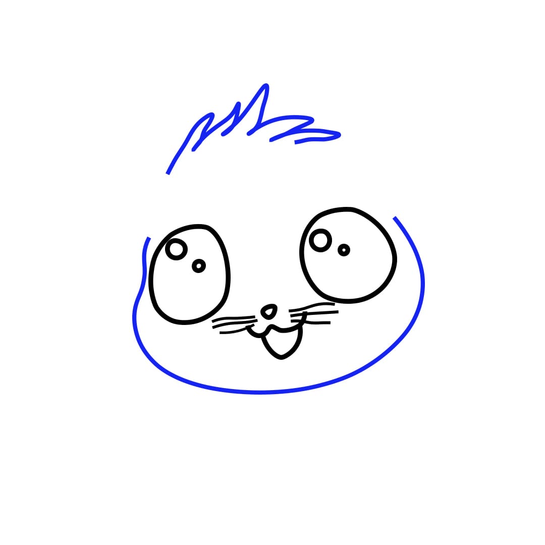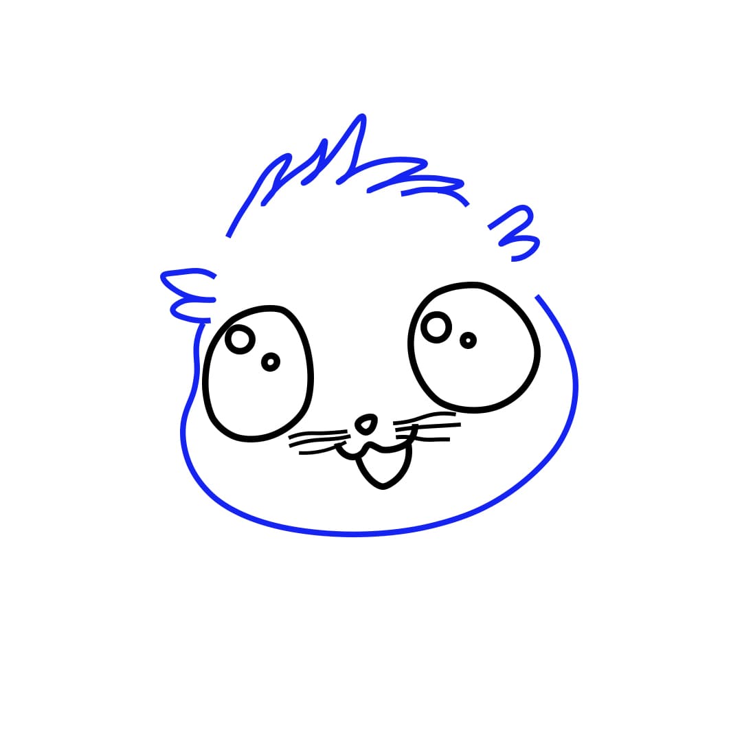 Passaggio 3: disegna la testa con 2 guance rotonde con una soffice pelliccia