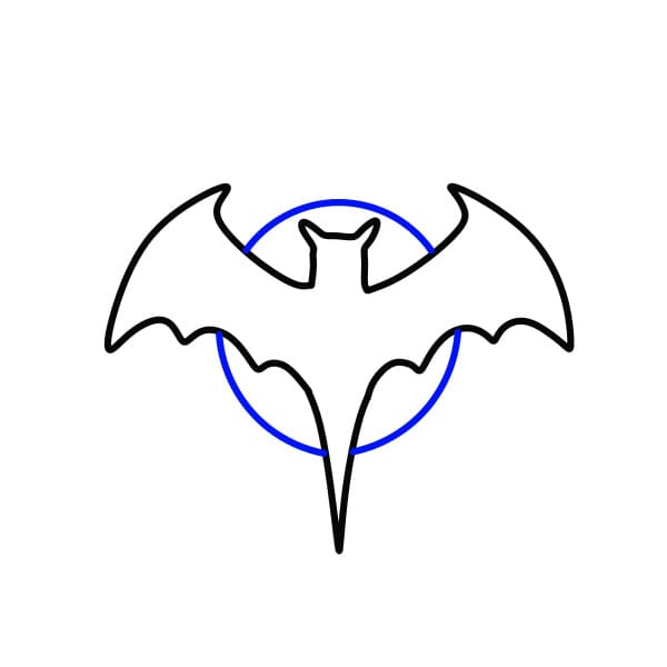 Passaggio 7: disegna il corpo del pipistrello e l’arco sul collo del pipistrello